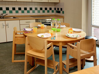 Das gemeinsame Frühstück und Mittagessen findet in einer familienähnlichen Atmosphäre statt. Somit üben sich die Kinder darin, ihr Besteck richtig zu nutzen und Tischregeln einzuhalten.